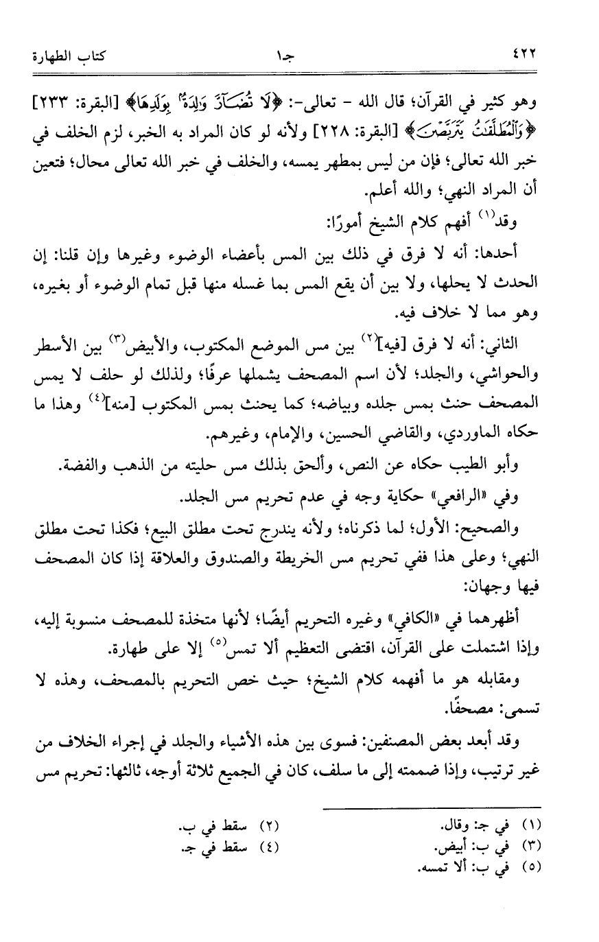 غير ترتيب، وإذا ضممته إلى ما سلف، كان في الجميع ثلاثة أوجه، ثالثها: تحريم مس