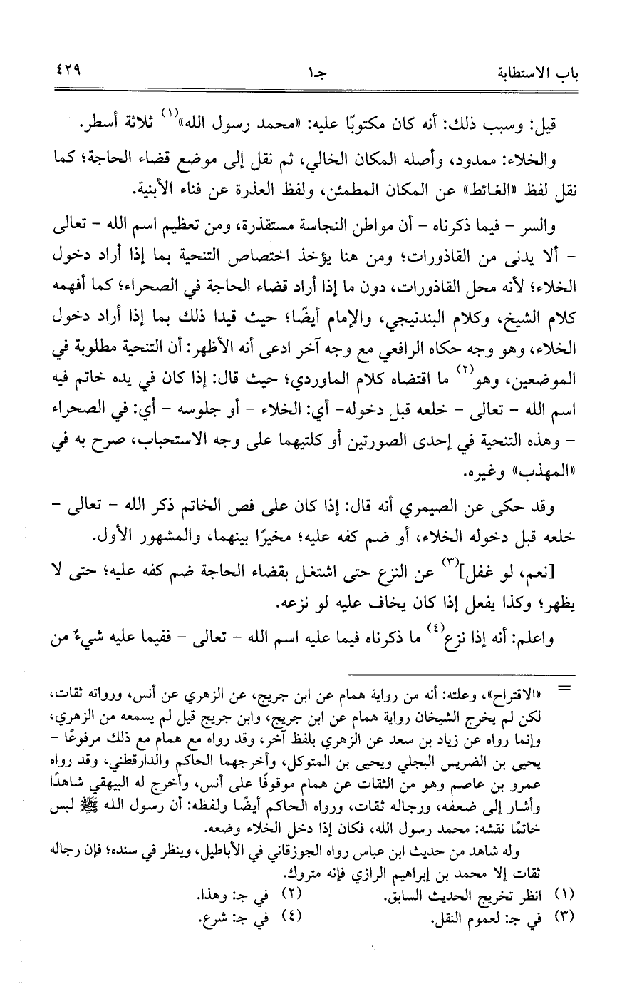 اسم الله - تعالى - خلعه قبل دخوله- أي: الخلاء - او جلوسه - أي: في الصحراء