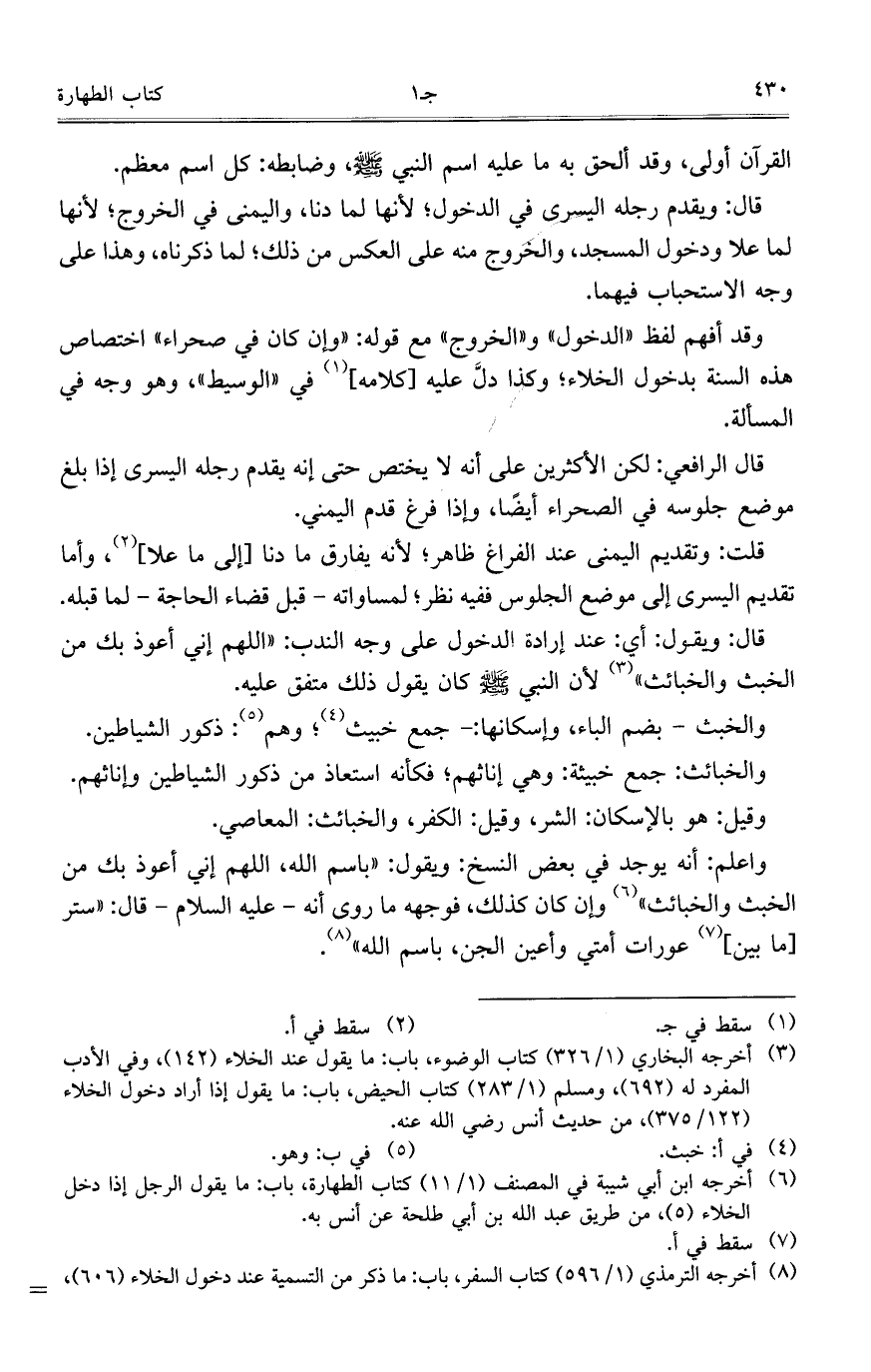 الخبث والخبائث" لأن النبي صلى الله عليه وسلم كان يقول ذلك متفق عليه.