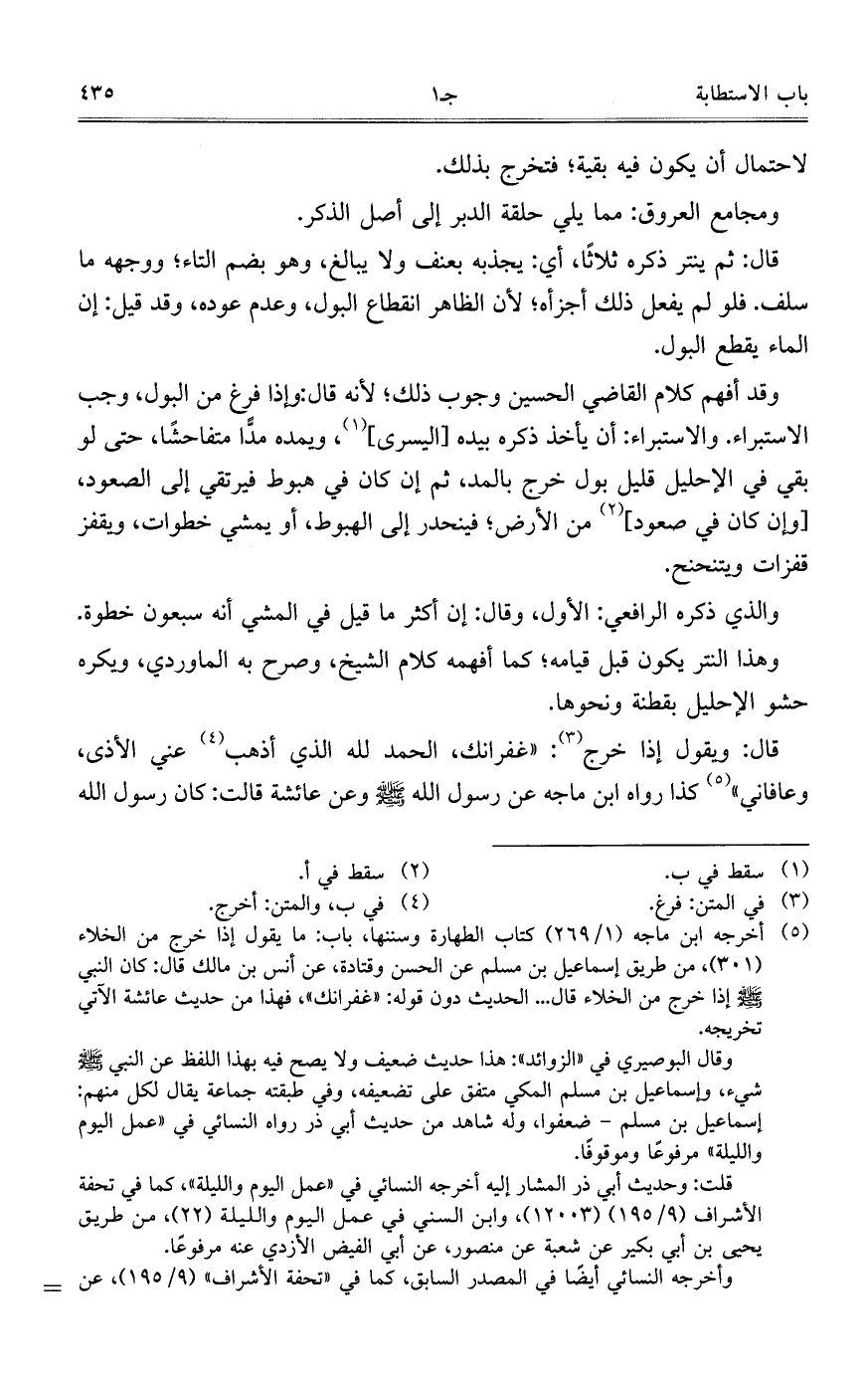 سلف. فلو لم يفعل ذلك أجزأه؛ لأن الظاهر انقطاع البول، وعدم عوده، وقد قيل: إن