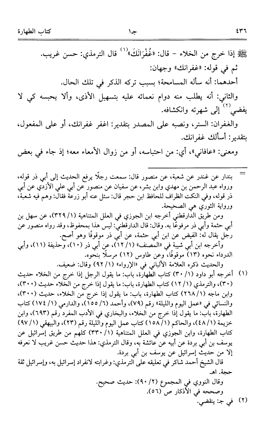 صلى الله عليه وسلم إذا خرج من الخلاء - قال: "غفرانك" قال الترمذي: حسن غريب.