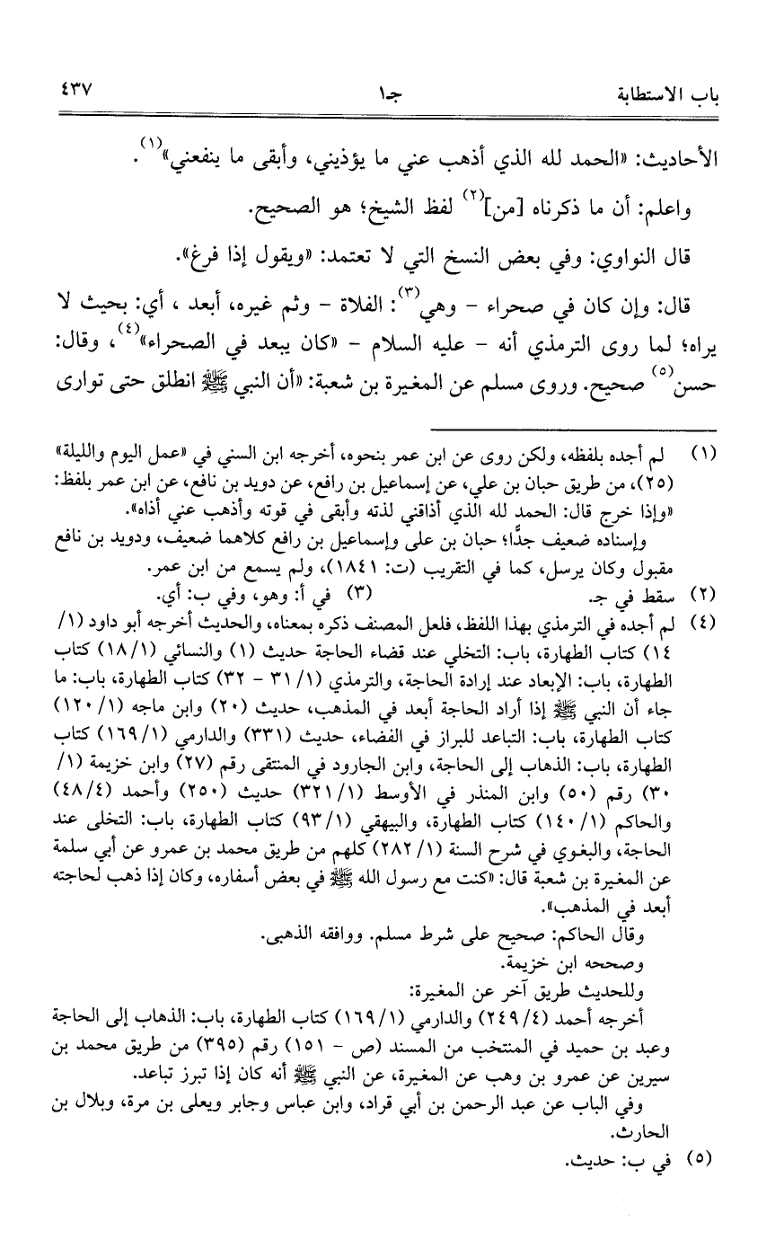 صحيح. وروى مسلم عن المغيرة بن شعبة:"أن النبي صلى الله عليه وسلم انطلق حتى توارى