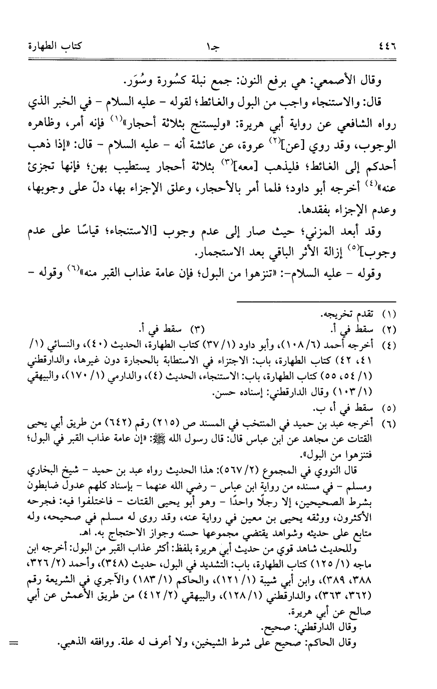 وقاله - عليه السلام -: "تنزهوا من البول؛ فإن علمة عذاب القبر منه" وقوله -