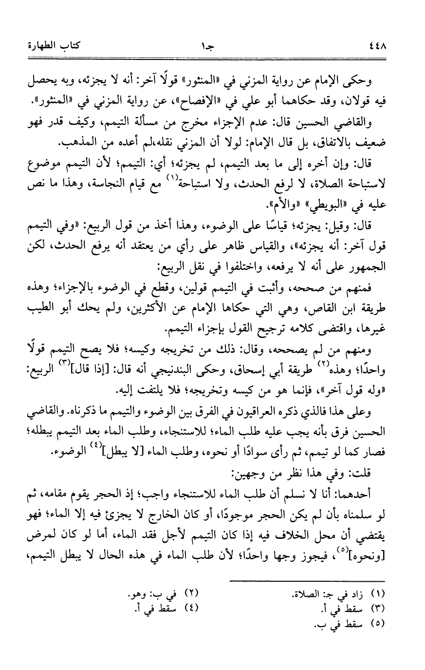 فمنهم من صححه، وأثبت في التيمم قولين، وقطع في الوضوء بالإجزاء؛ وهذه