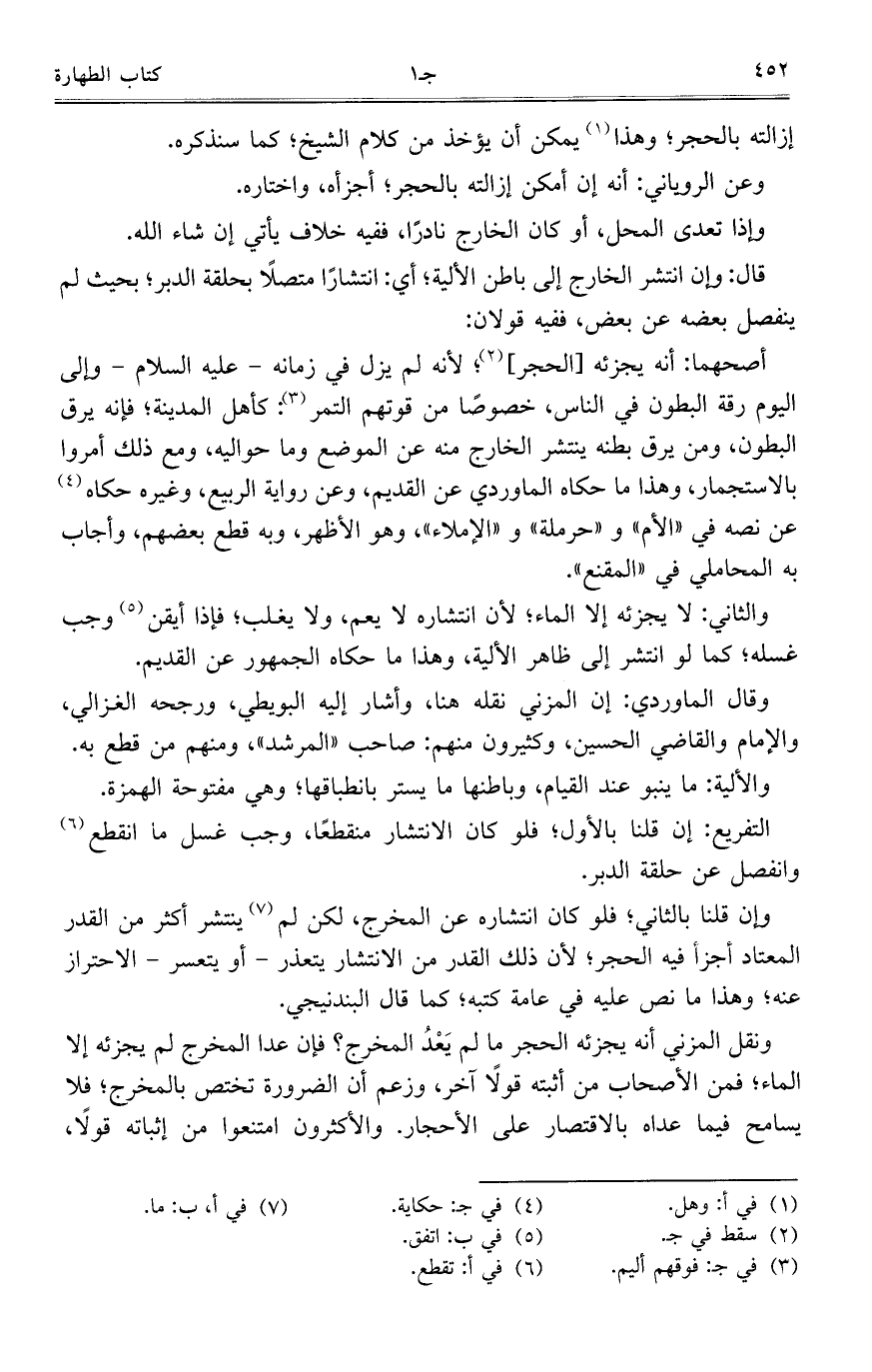 إزالته بالحجر؛ وهذا يمكن أن يؤخذ من كلام الشيخ؛ كما سنذكره.