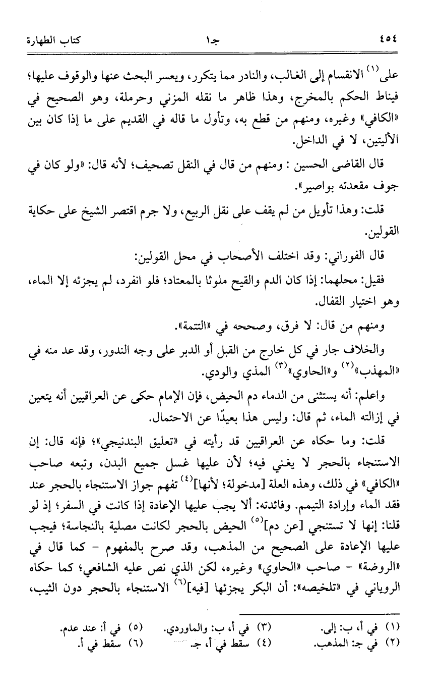واعلم: أنه يستثنى من الدماء دم الحيض؛ فإن الإمام حكى عن العراقيين ـنه يتعين