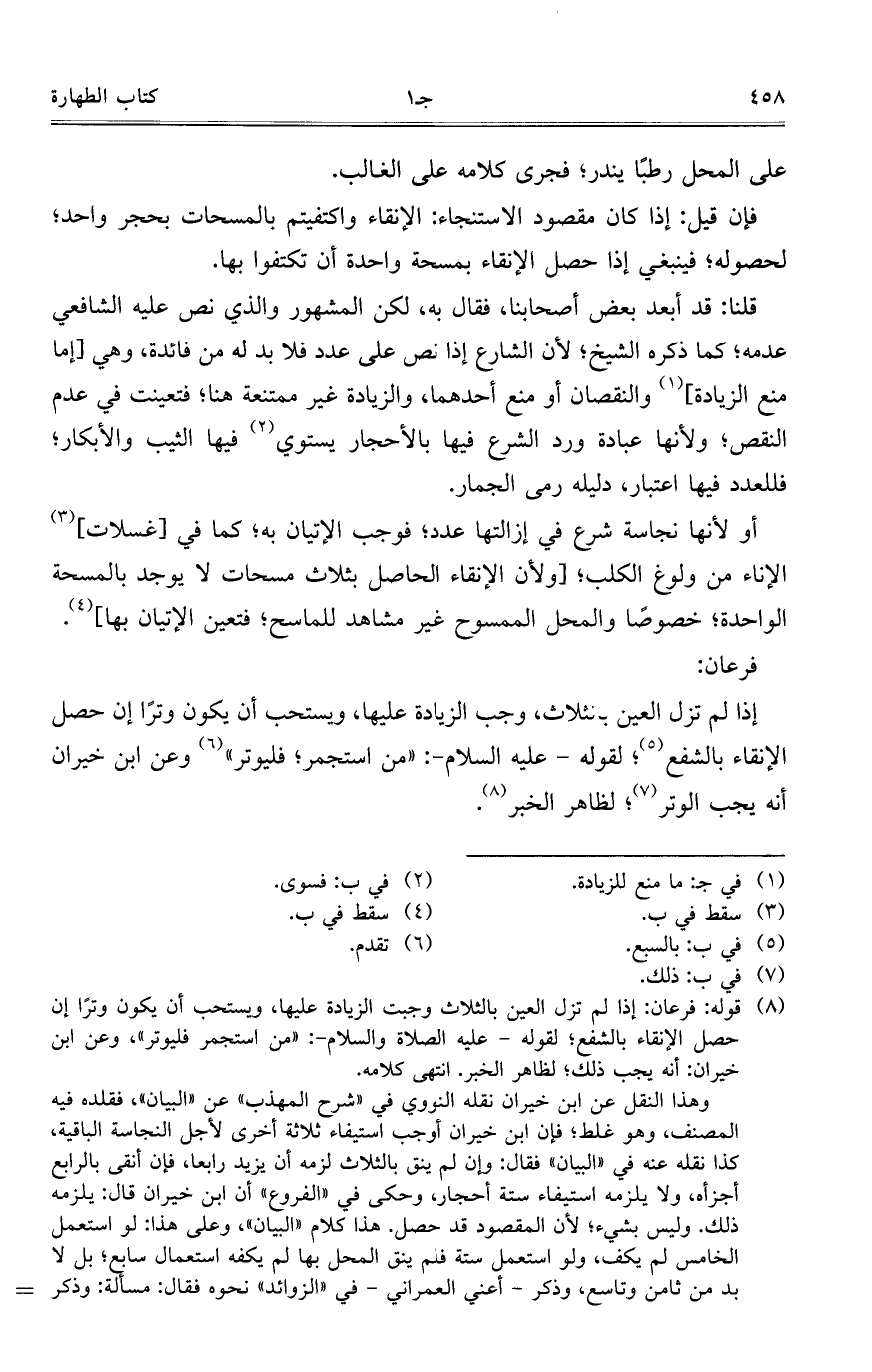 الإنقاء بالشفع؛ لقوله - عليه السلام-:"من استجمر؛ فليوتر" وعن ابن خيران