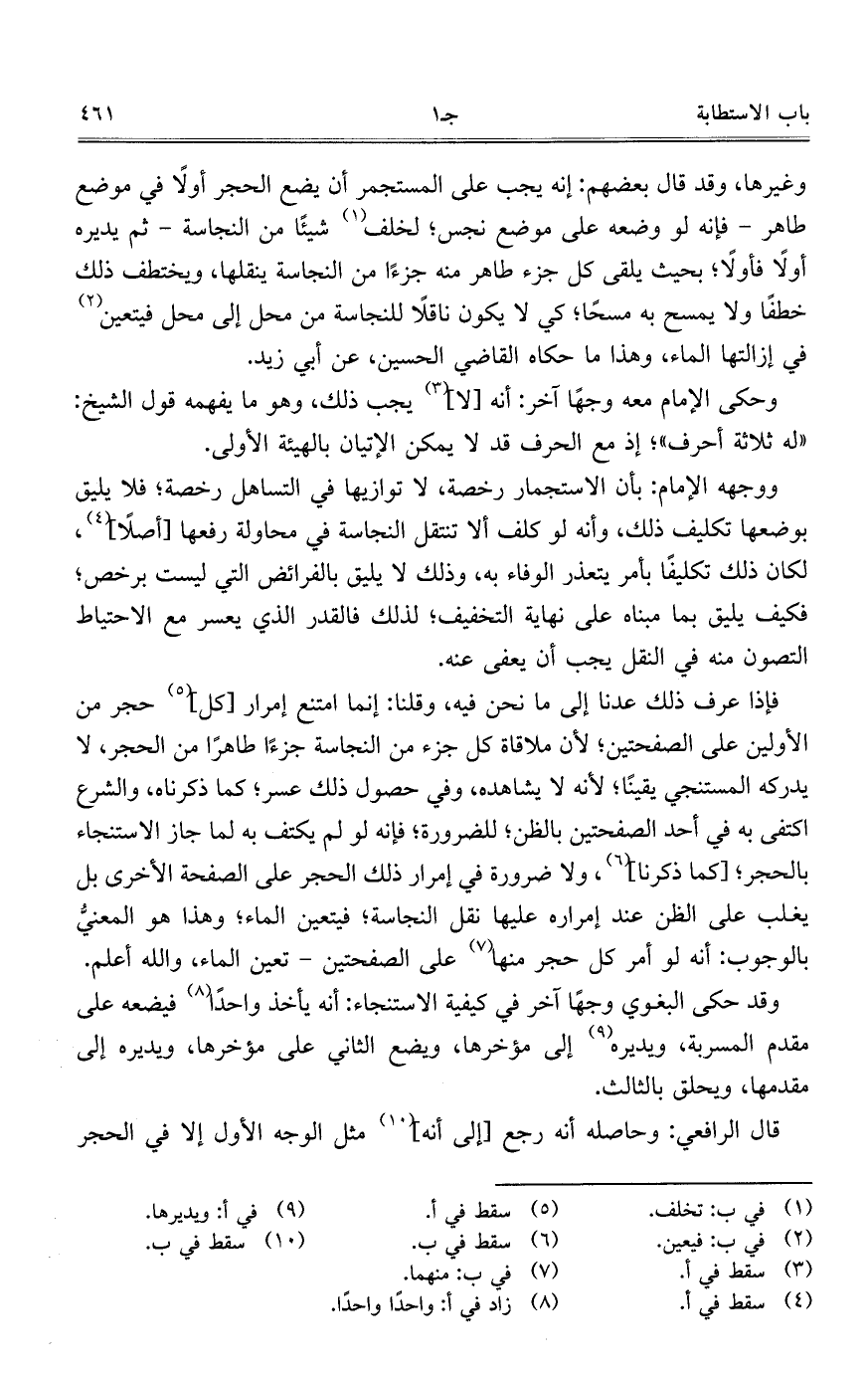 وغيرها، وقد قال بعضهم: إنه يجب على المستجمر أن يضع الحجر أولاً في موضع