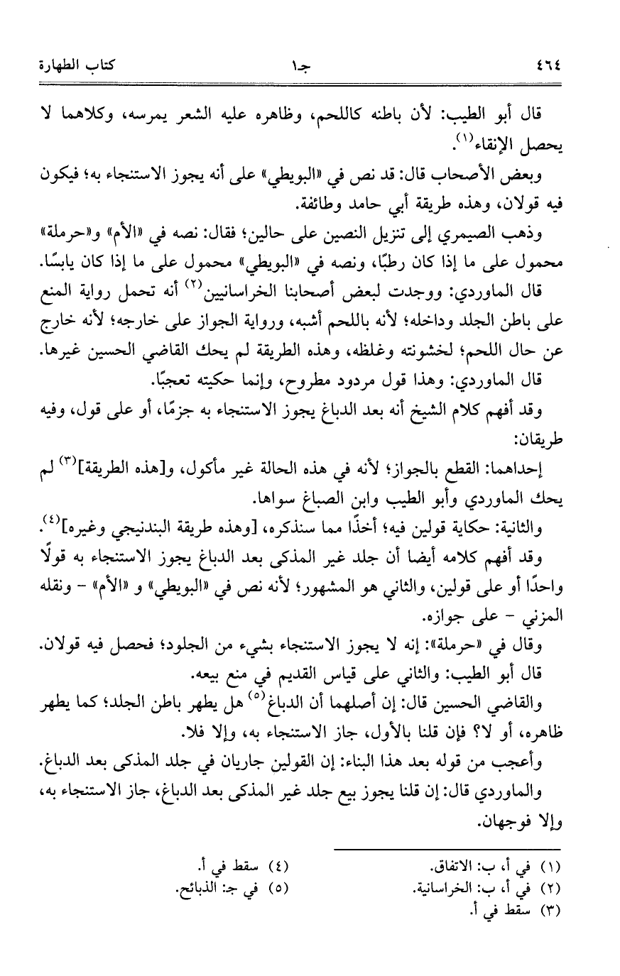 عن حال اللحم؛ لخشونته وغلظه, وهذه الطريقة لم يحك القاشي الحسين غيرها.