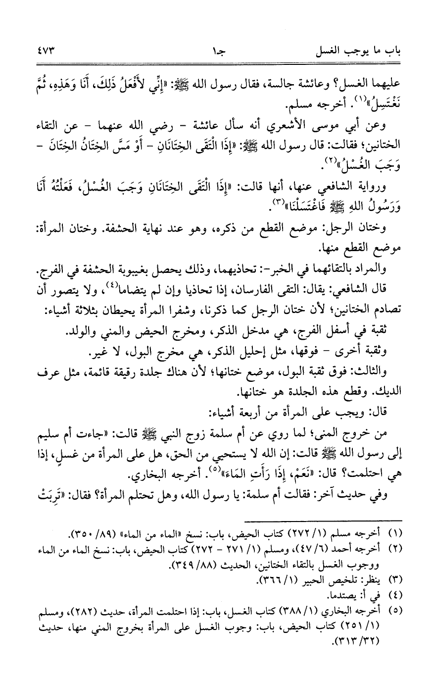 عليهما الغسل؟ وعائشة جالسة، فقال رسول الله صلى الله عليه وسلم:"إني لأفعل ذلك، أنا وهذه، ثم نغتسل". أخرجه مسلم.