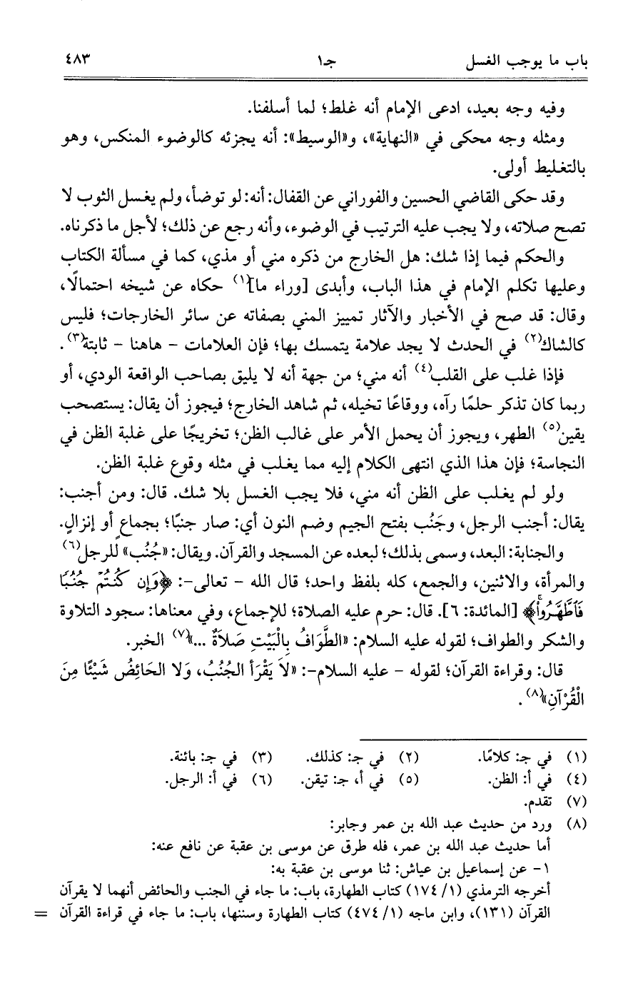 فاطهروا} [المائدة:6]. قال: حرم عليه الصلاة؛ للإجماع، وفي معناها: سجود التلاوة