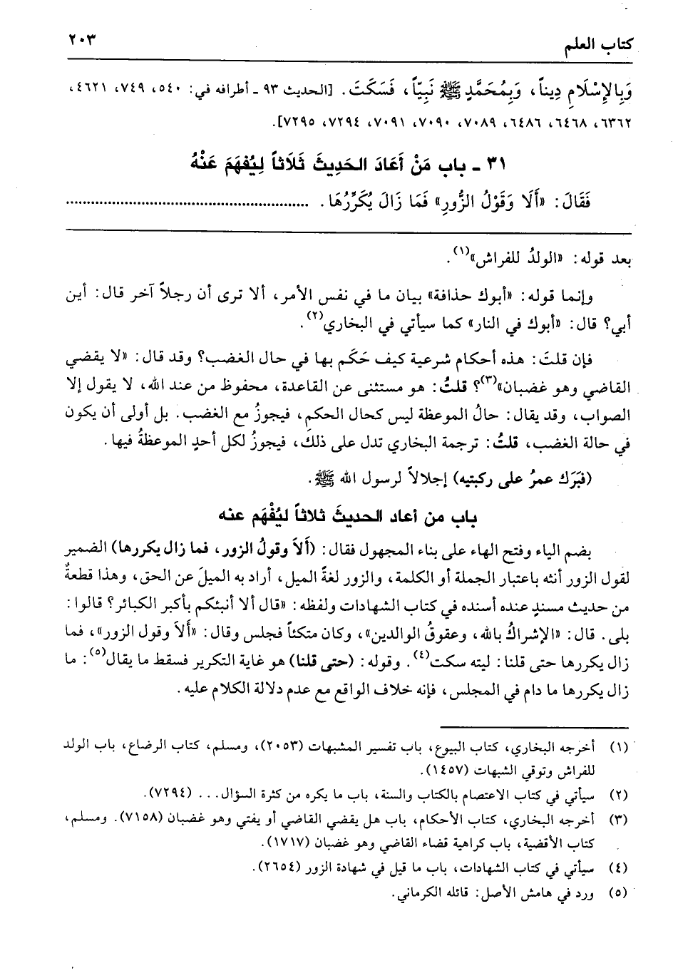 31 - بَابُ مَنْ أَعَادَ الحَدِيثَ ثَلاَثًا لِيُفْهَمَ عَنْهُ
