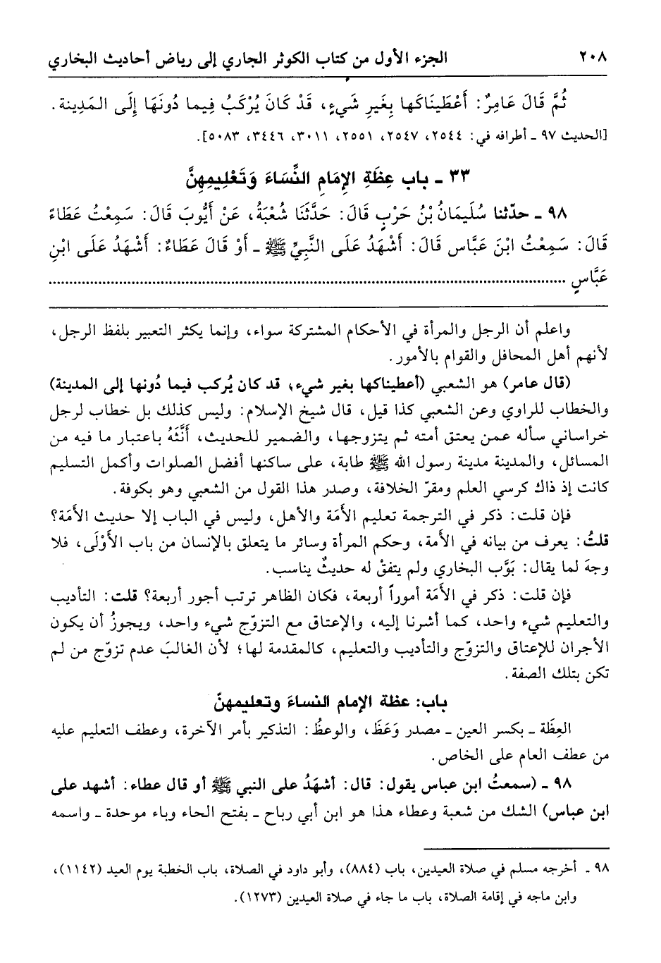 98 - (سمعتُ ابن عباس يقول: قال: أشهَدُ على النبي - صلى الله عليه وسلم - أو قال عطاء: أشهد على ابن عباس) الشك من شعبة وعطاء هذا هو ابن أبي رباح -بفتح الحاء وباء موحدة- واسمه
