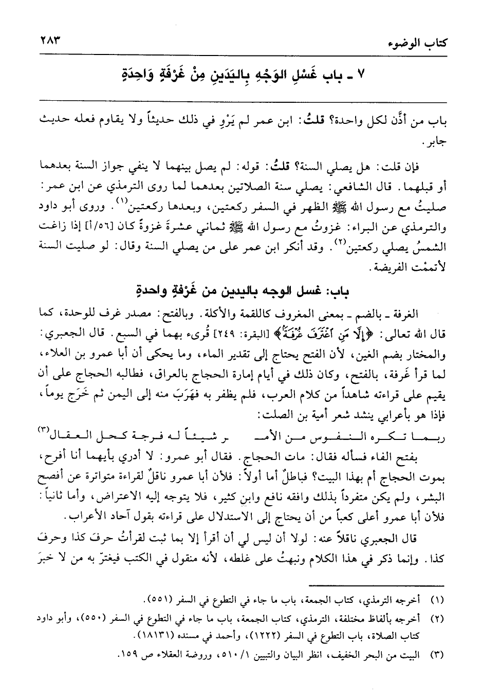 7 - بَابُ غَسْلِ الوَجْهِ بِاليَدَيْنِ مِنْ غَرْفَةٍ وَاحِدَةٍ