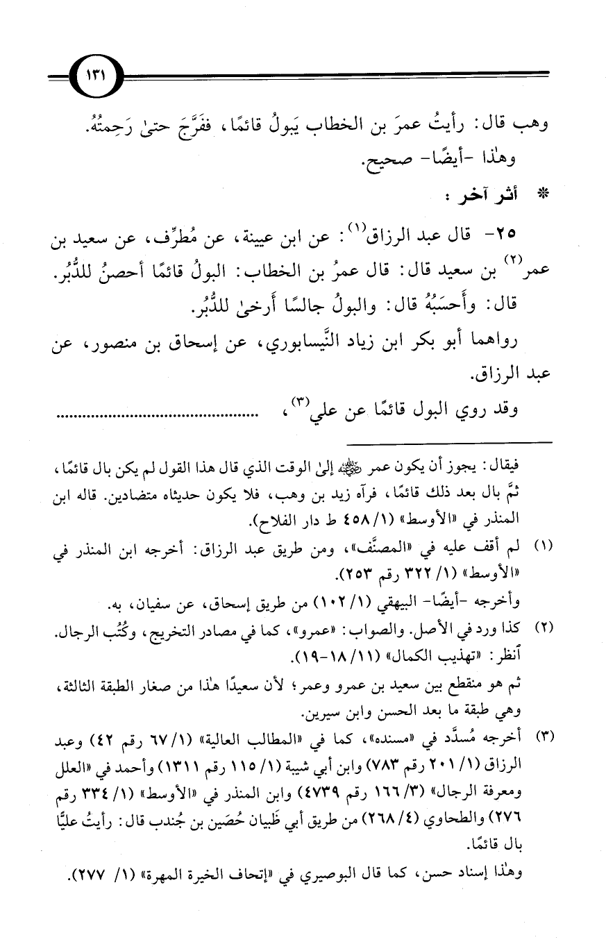 (25) قال عبد الرزاق (¬1): عن ابن عيينة، عن مُطرِّف، عن سعيد بن عمر (¬2)