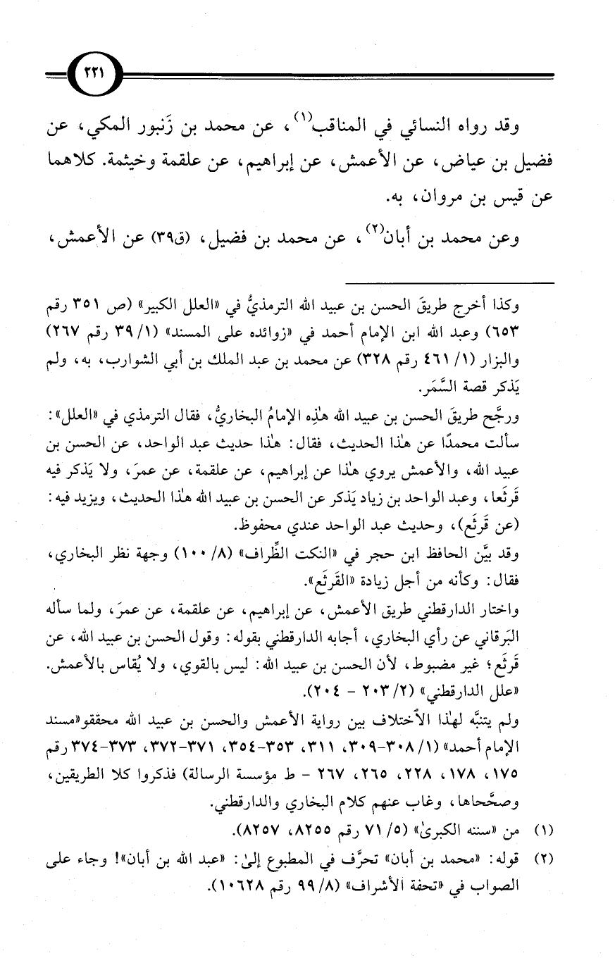 وقد رواه النسائي في المناقب (¬1)، عن محمد بن زَنبور المكي، عن فضيل بن عياض، عن الأعمش، عن إبراهيم، عن علقمة وخيثمة. كلاهما عن قيس بن مروان، به.
