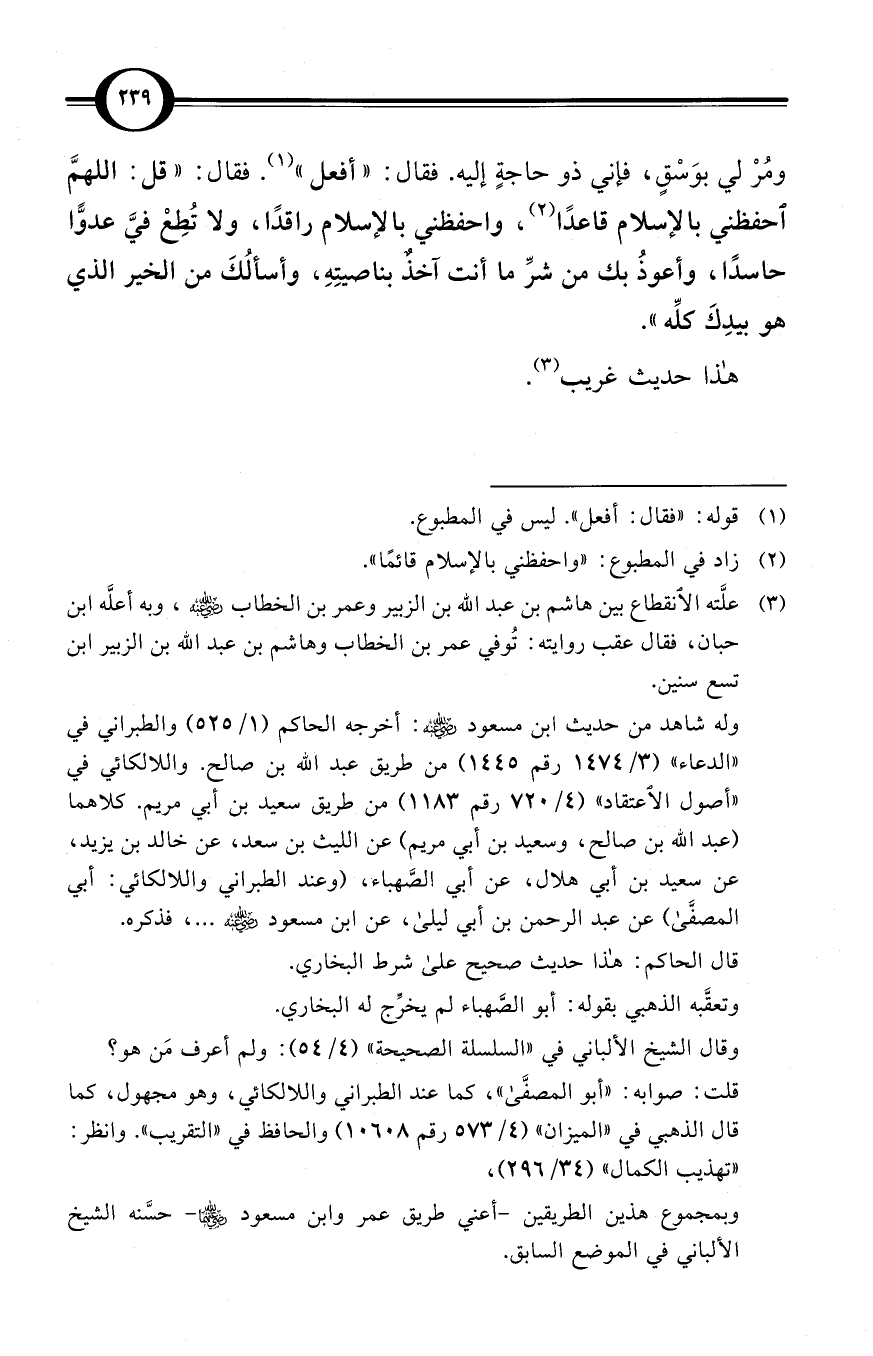 وبمجموع هذين الطريقين -أعني طريق عمر وابن مسعود رضي الله عنهما- حسَّنه الشيخ الألباني في الموضع السابق.