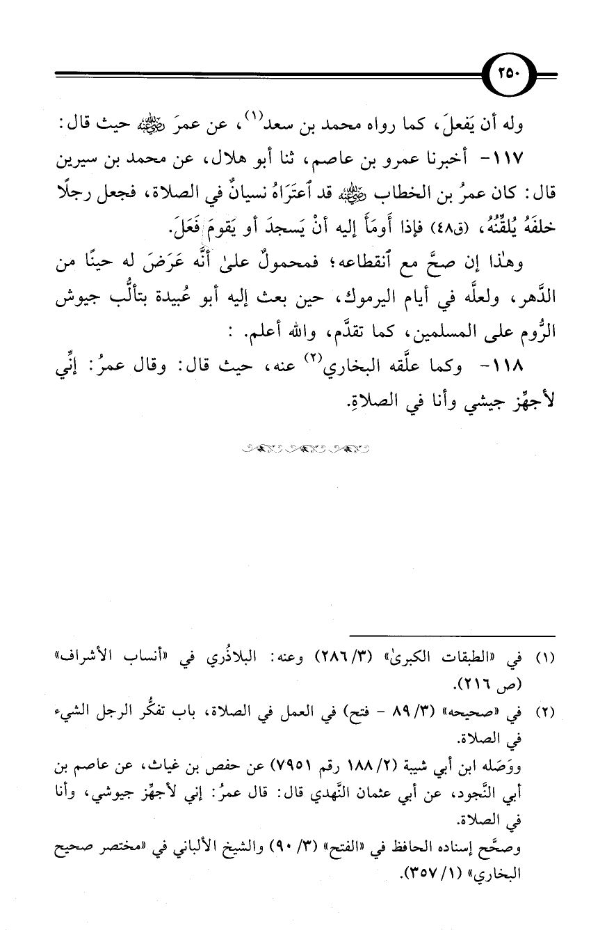 (118) وكما علَّقه البخاري (¬2) عنه، حيث قال: وقال عمرُ: إنِّي لأجهِّز جيشي وأنا في الصلاةِ.