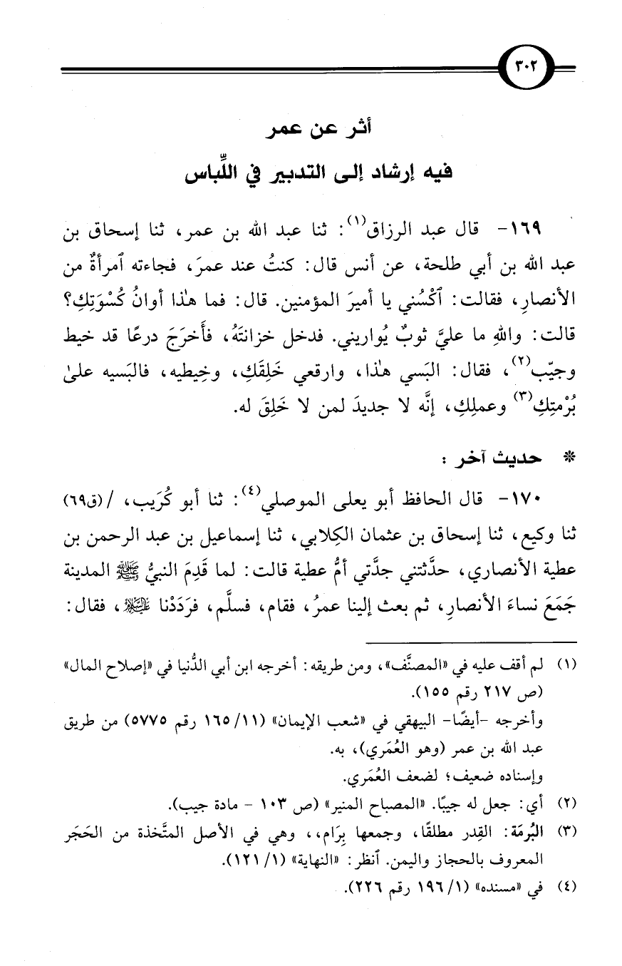 أثر عن عمر فيه إرشاد إلى التدبير في اللِّباس