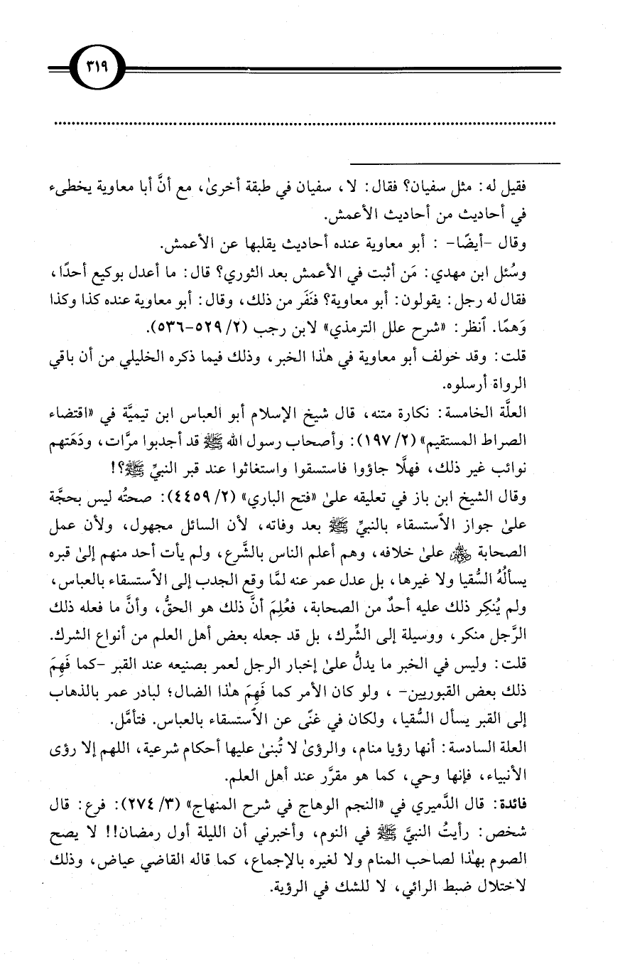 = فقيل له: مثل سفيان؟ فقال: لا، سفيان في طبقة أخرى، مع أنَّ أبا معاوية يخطئ في أحاديث من أحاديث الأعمش.