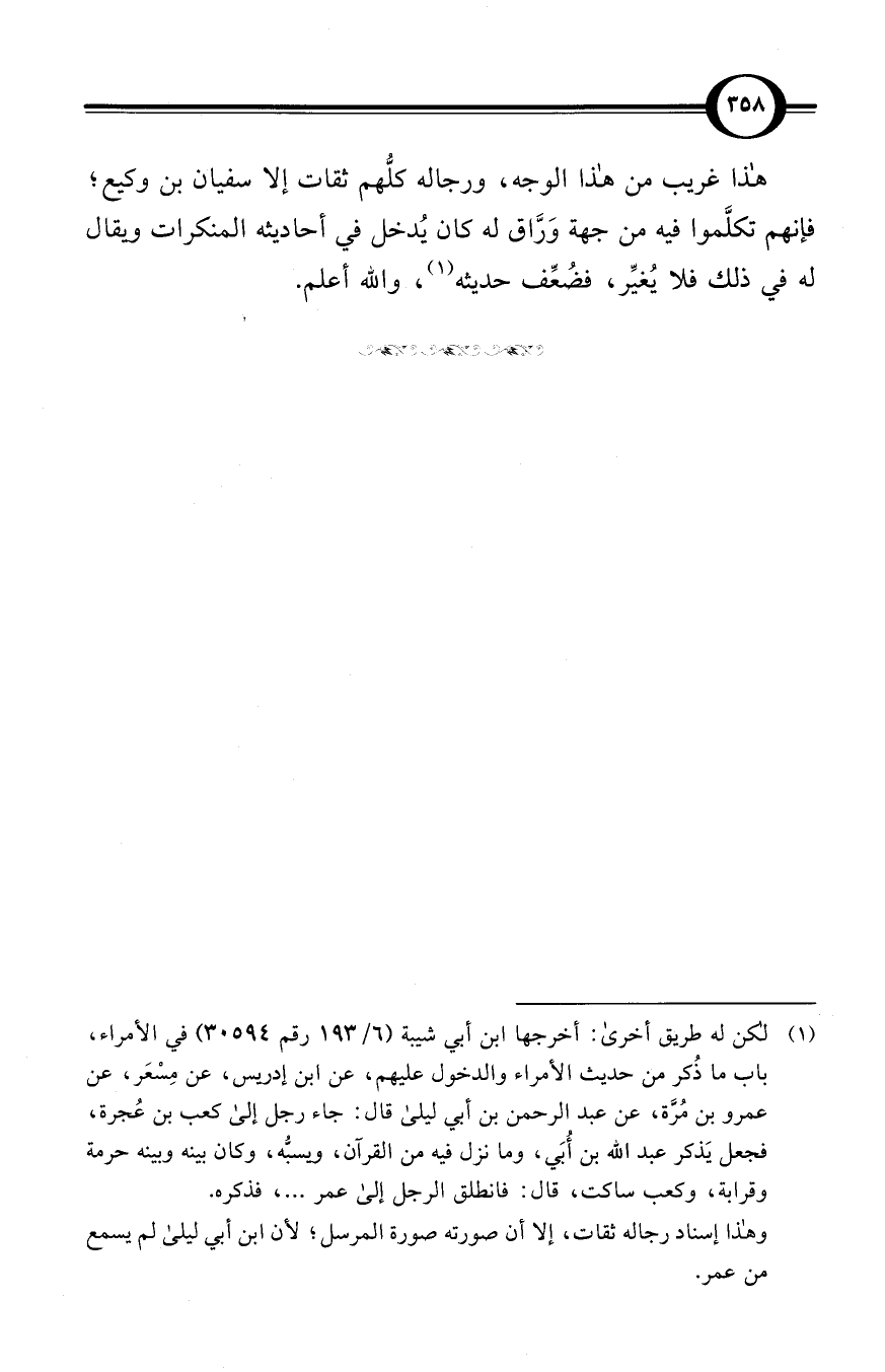 وهذا إسناد رجاله ثقات، إلا أن صورته صورة المرسل؛ لأن ابن أبي ليلى لم يسمع من عمر.