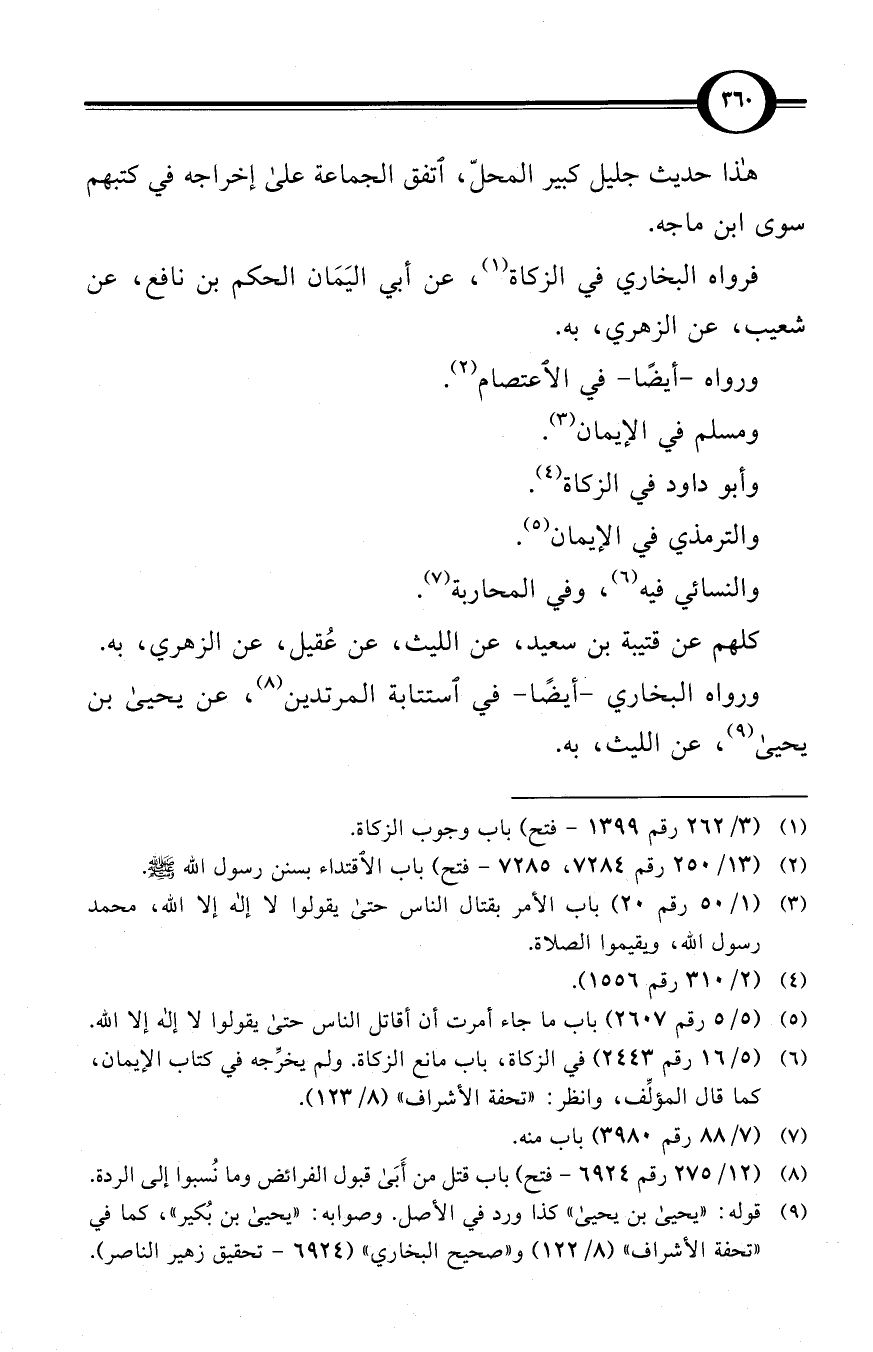 فرواه البخاري في الزكاة (¬1)، عن أبي اليَمَان الحكم بن نافع، عن شعيب، عن الزهري، به.