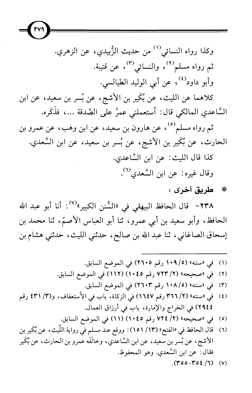(¬6) قال الحافظ في «الفتح» (13/ 151): ووقع عند مسلم في رواية اللَّيث، عن بُكَير بن الأشج، عن بُسر بن سعيد، عن ابن السَّاعدي، وخالَفَه عمرو بن الحارث، عن بُكَير فقال: عن ابن السَّعدي. وهو المحفوظ.