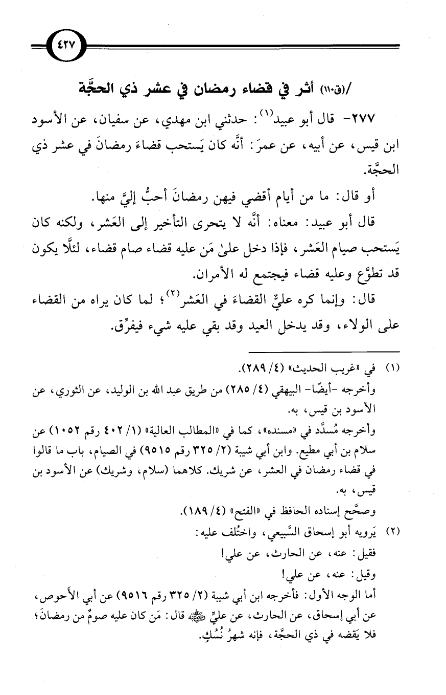 / (ق 110) أثر في قضاء رمضان في عشر ذي الحجَّة