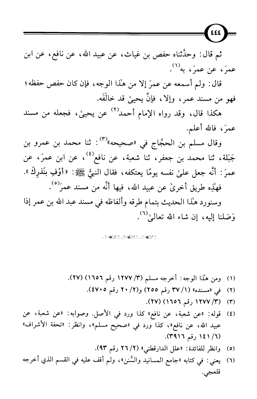 (¬4) قوله: «عن شعبة، عن نافع» كذا ورد بالأصل. وصوابه: «عن شعبة، عن عبيد الله، عن نافع»، كذا ورد في «صحيح مسلم»، وانظر: «تحفة الأشراف» (6/ 141 رقم 3916).