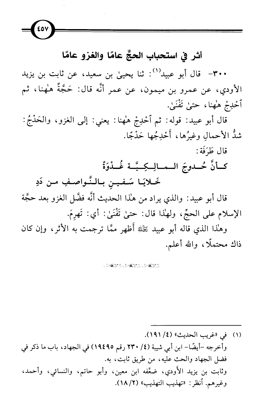قال أبو عبيد: والذي يراد من هذا الحديث أنَّه فضَّل الغزو بعد حجَّة الإسلام على الحجِّ، ولهذا قال: حتى تَفْنَى: أي: تَهرِمَ.
