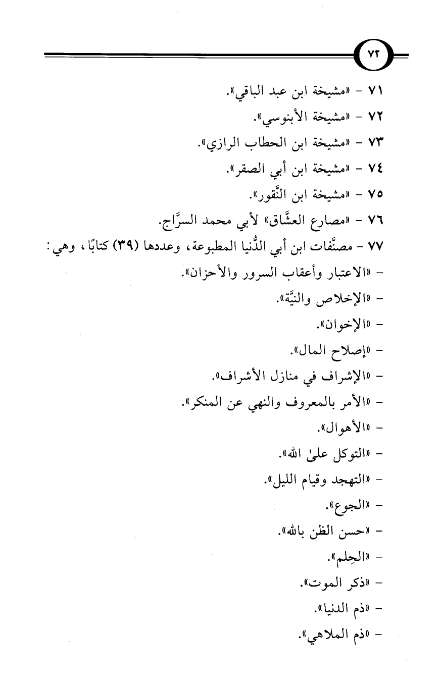 82 - مصنَّفات ابن أبي الدُّنيا المطبوعة، وعددها (39) كتابًا، وهي: