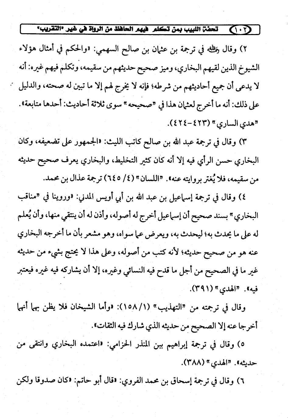 5) وقال في ترجمة إبراهيم بن المنذر الحزامي: "اعتمده البخاري وانتقى من حديثه". "الهدي" (388).