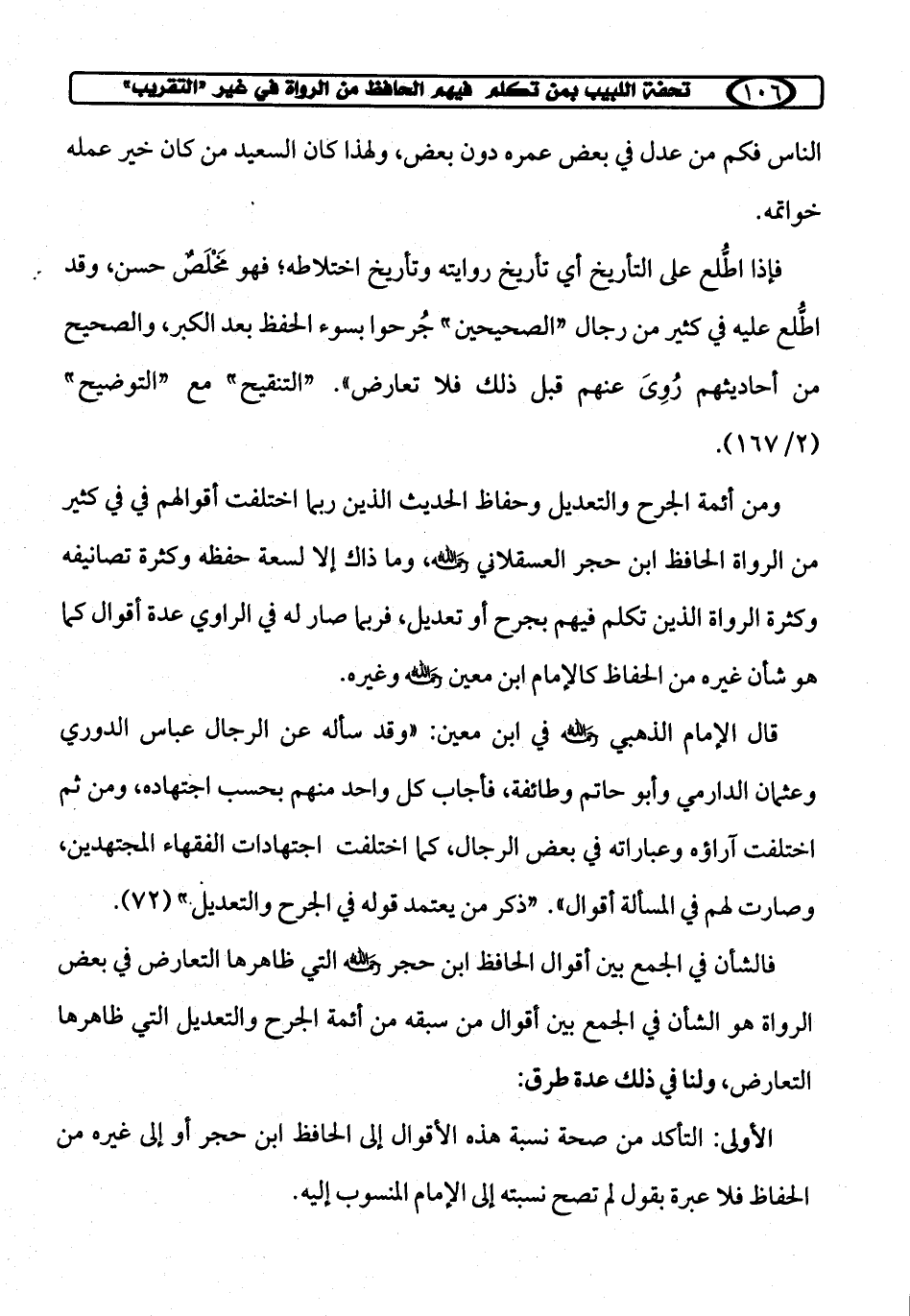 الأولى: التأكد من صحة نسبة هذه الأقوال إلى الحافظ ابن حجر أو إلى غيره من الحفاظ فلا عبرة بقول لم تصح نسبته إلى الإمام المنسوب إليه.