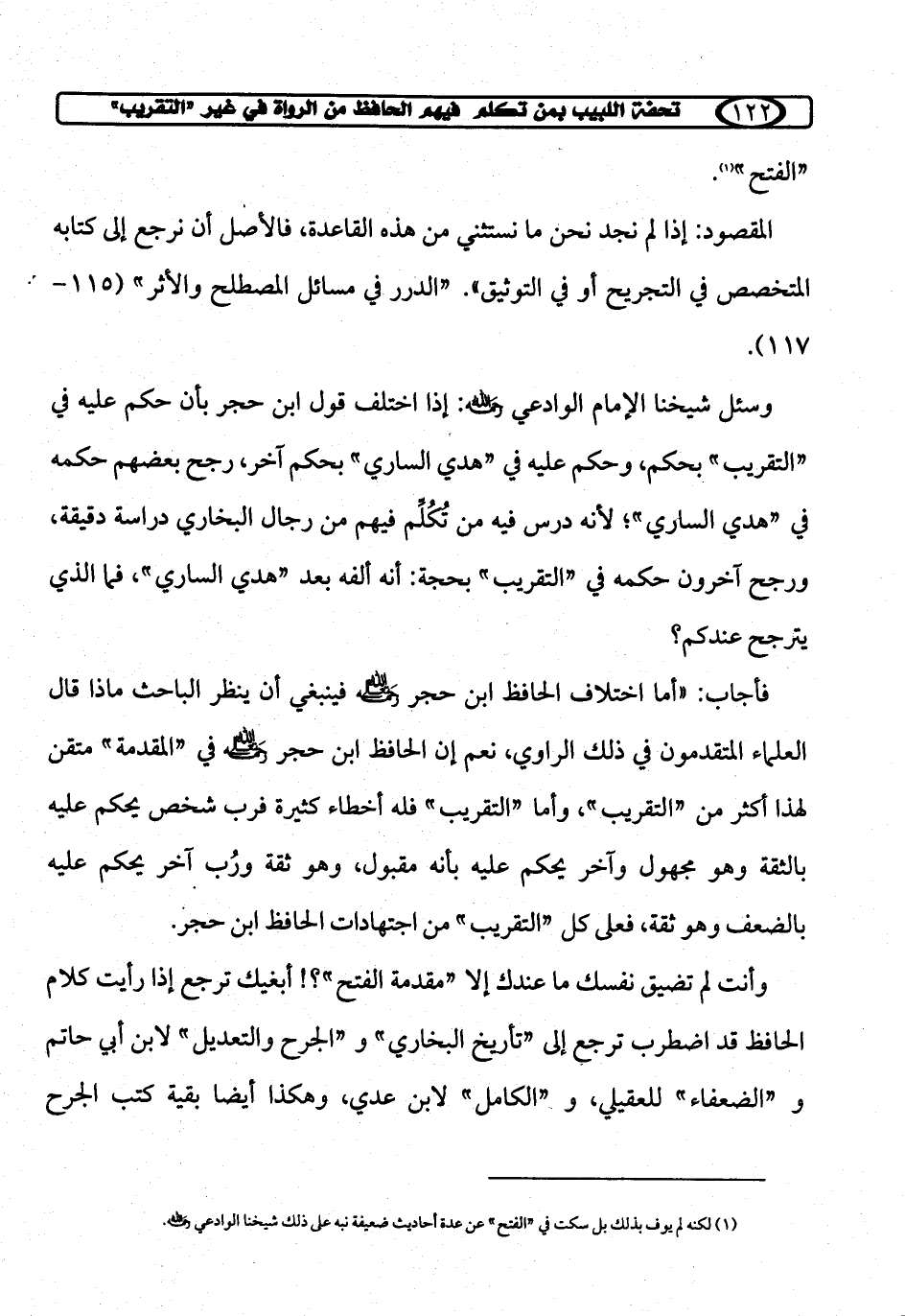 (¬1) لكنه لم يوف بذلك بل سكت في "الفتح" عن عدة أحاديث ضعيفة نبه على ذلك شيخنا الوادعي رحمه الله.