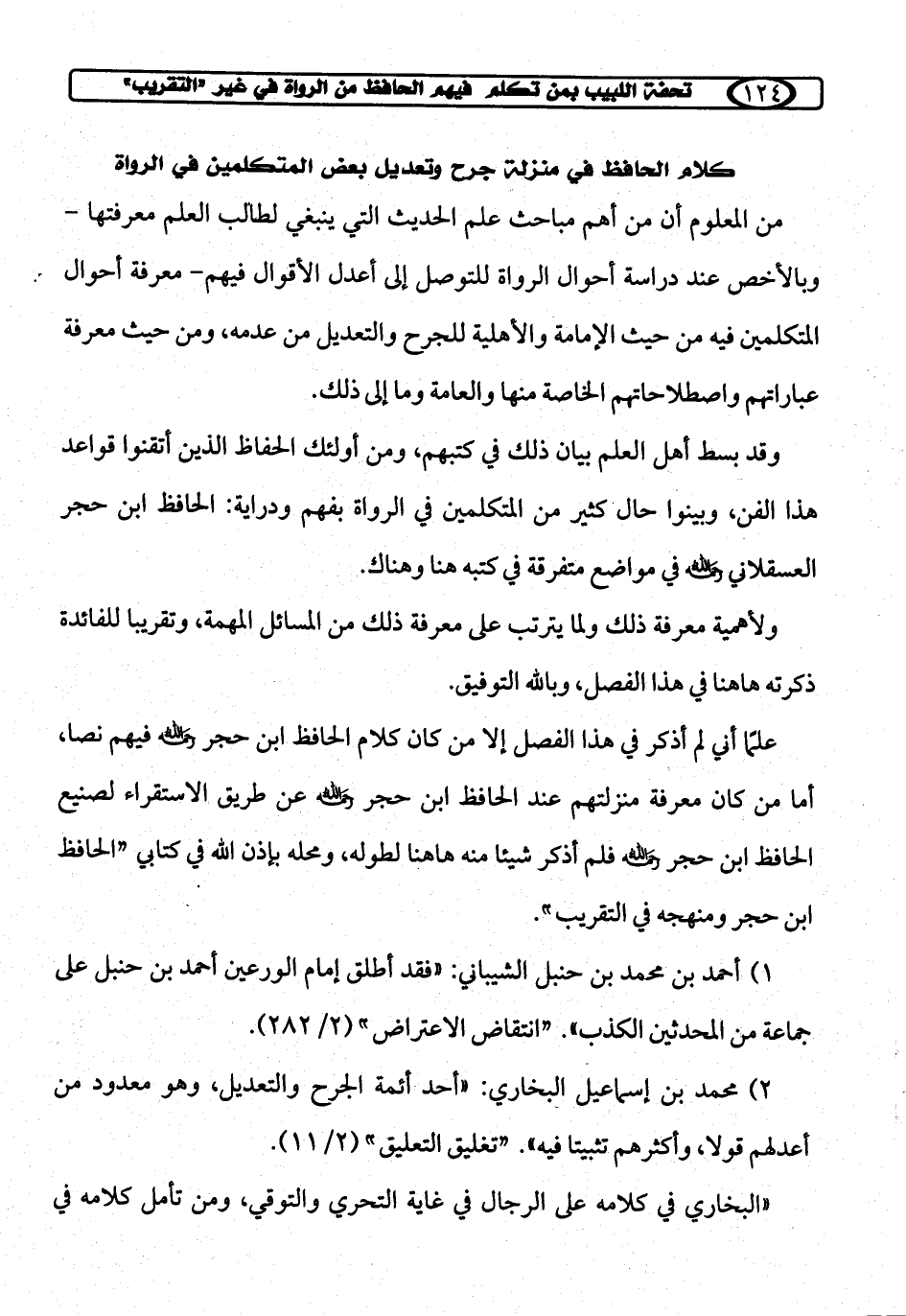 كلام الحافظ في منزلة جرح وتعديل بعض المتكلمين في الرواة