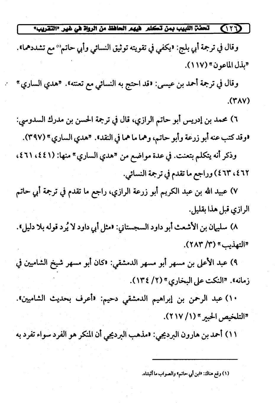 11) أحمد بن هارون البرديجي: "مذهب البرديجي أن المنكر هو الفرد سواء تفرد به