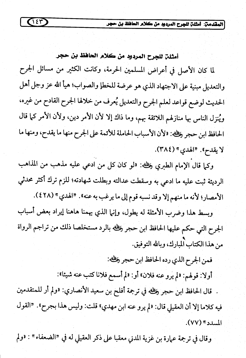 أمثلة للجرح المردود من كلام الحافظ بن حجر