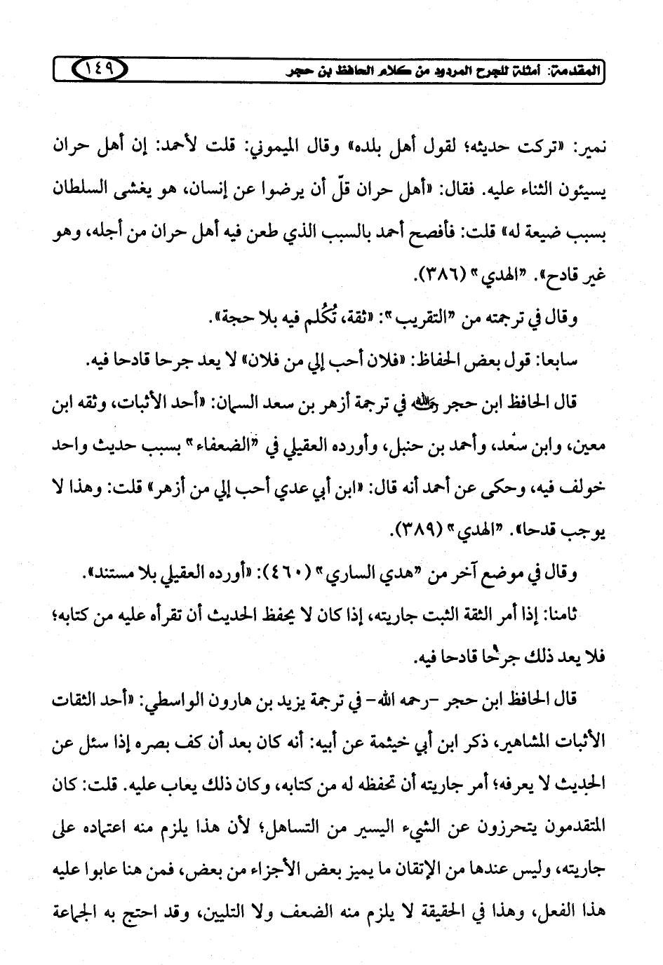 قال الحافظ ابن حجر رحمه الله في ترجمة أزهر بن سعد السمان: "أحد الأثبات، وثقه ابن معين، وابن سعد، وأحمد بن حنبل، وأورده العقيلي في "الضعفاء" بسبب حديث واحد خولف فيه، وحكى عن أحمد أنه قال: "ابن أبي عدي أحب إلي من أزهر" قلت: وهذا لا يوجب قدحا". "الهدي" (389).