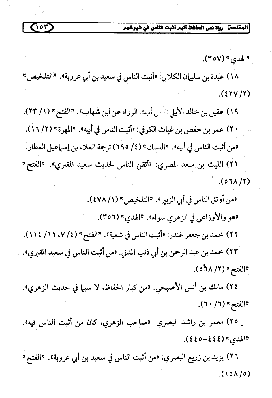 25) معمر بن راشد البصري: "صاحب الزهري، كان من أثبت الناس فيه". "الهدي" (444 - 445).