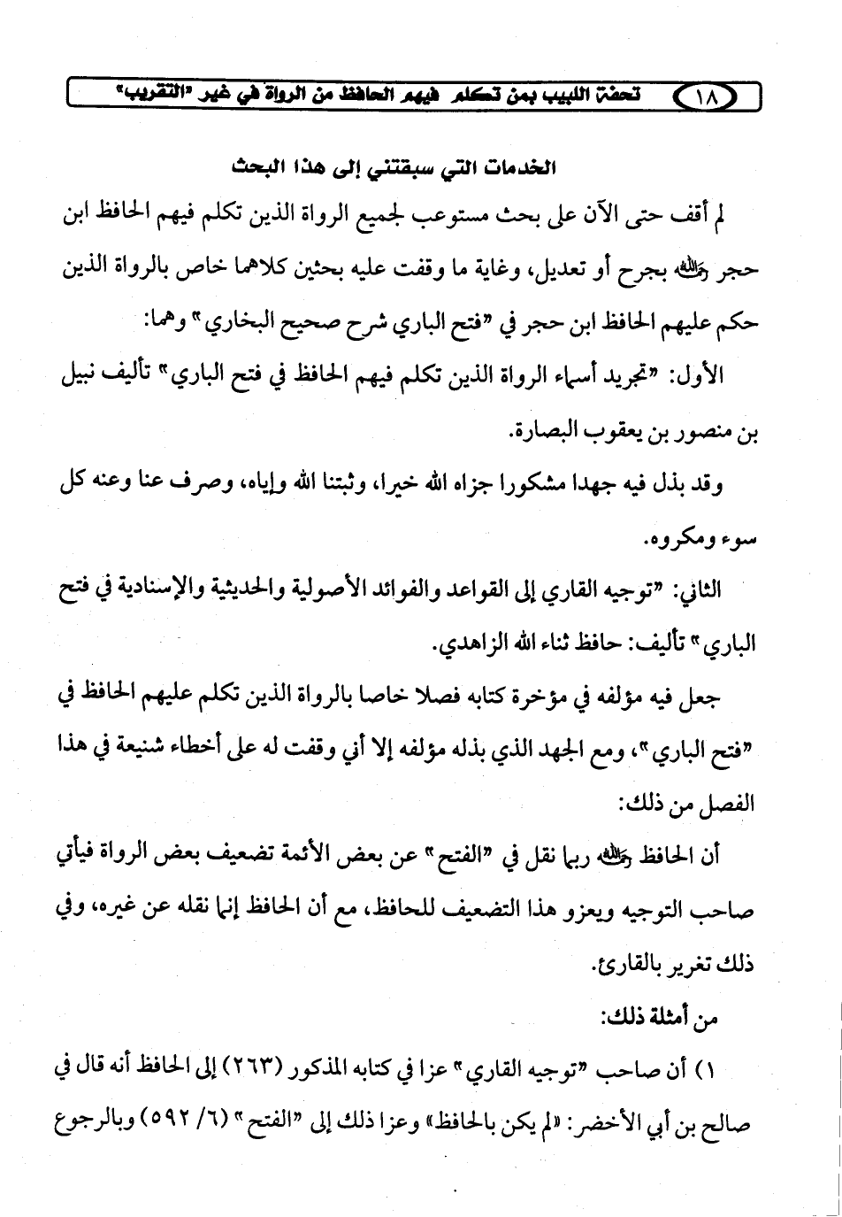 الأول: "تجريد أسماء الرواة الذين تكلم فيهم الحافظ في فتح الباري" تأليف نبيل بن منصور بن يعقوب البصارة.