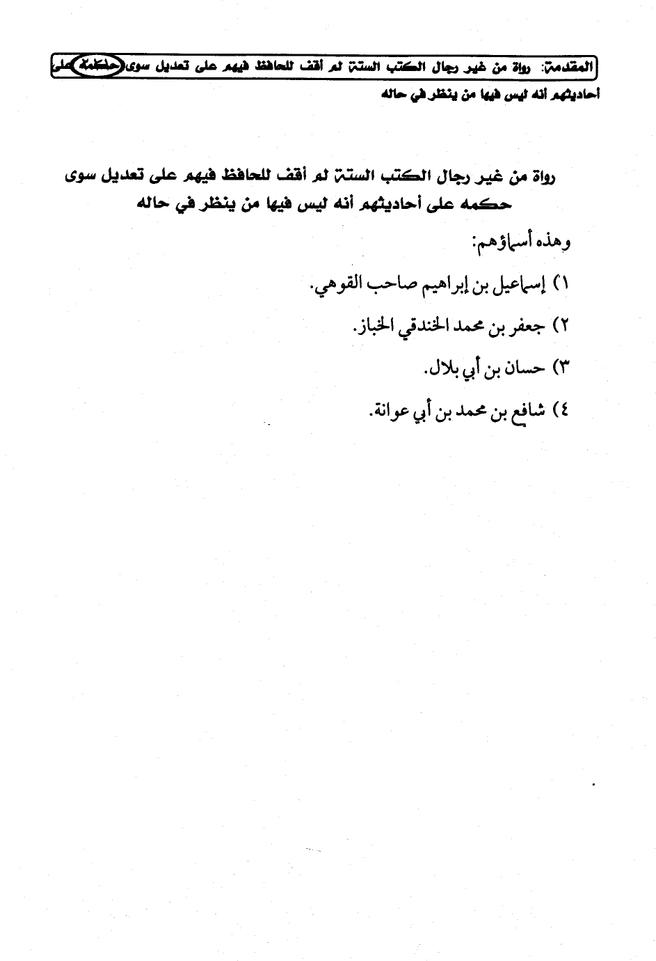رواة من غير رجال الكتب الستة لم أقف للحافظ فيهم على تعديل سوى حكمه على أحاديثهم أنه ليس فيها من ينظر في حاله