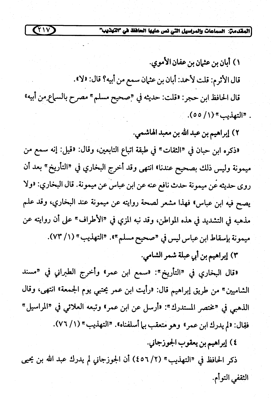 "قال البخاري في "التأريخ": "سمع ابن عمر" وأخرج الطبراني في "مسند الشاميين" من طريق إبراهيم قال: "رأيت ابن عمر يحتبي يوم الجمعة" انتهى، وقال الذهبي في "مختصر المستدرك": "أرسل عن ابن عمر" وتبعه العلائي في "المراسيل" فقال: "لم يدرك ابن عمر" وهو متعقب بما أسلفناه". "التهذيب" (1/ 76).