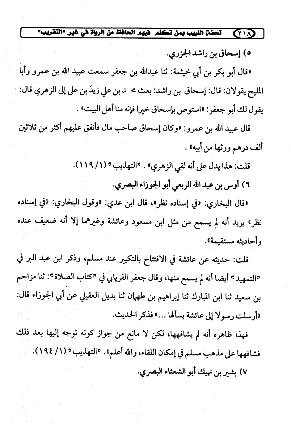 كتاب تحفة اللبيب بمن تكلم فيهم الحافظ ابن حجر من الرواة في غير «التقريب» (اسم الجزء: 1)