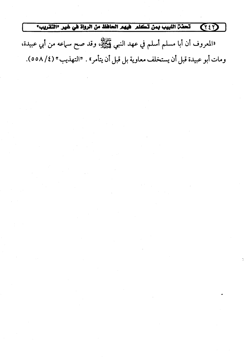 كتاب تحفة اللبيب بمن تكلم فيهم الحافظ ابن حجر من الرواة في غير «التقريب» (اسم الجزء: 1)