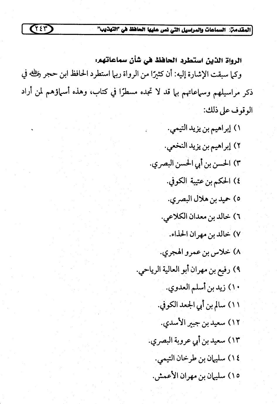 وكما سبقت الإشارة إليه: أن كثيرًا من الرواة ربما استطرد الحافظ ابن حجر - رحمَه الله - في ذكر مراسيلهم وسماعاتهم بما قد لا تجده مسطرًا في كتاب، وهذه أسماؤهم لمن أراد الوقوف على ذلك: