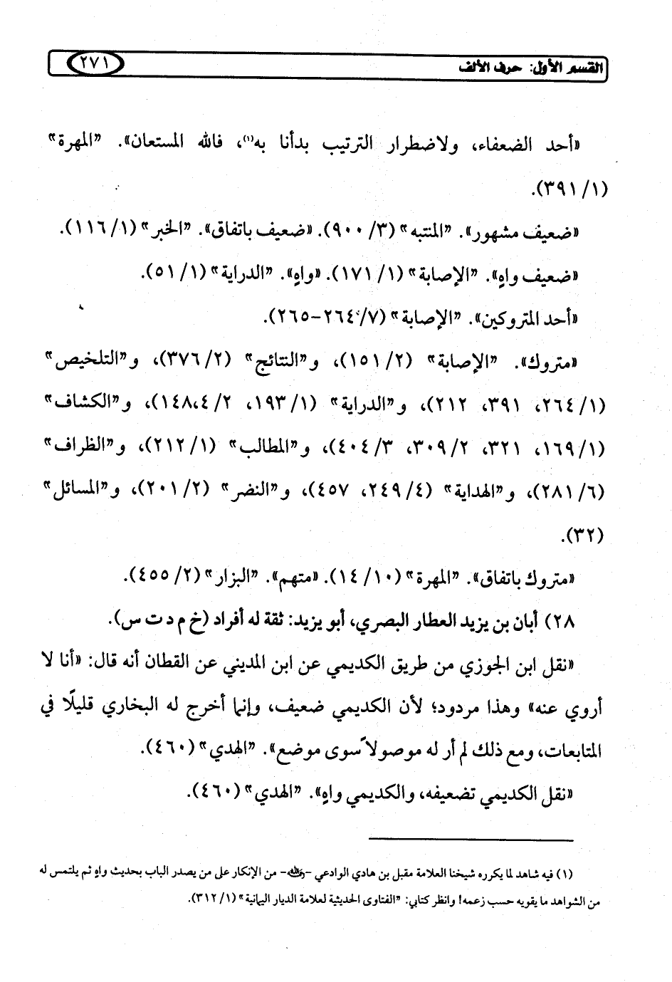 (¬1) فيه شاهد لما يكرره شيخنا العلامة مقبل بن هادي الوادعي - رحمه الله - من الإنكار على من يصدر الباب بحديث واهٍ ثم يلتمس له من الشواهد ما يقويه حسب زعمه! وانظر كتابي: "الفتاوى الحديثية لعلامة الديار اليمانية" (1/ 312).