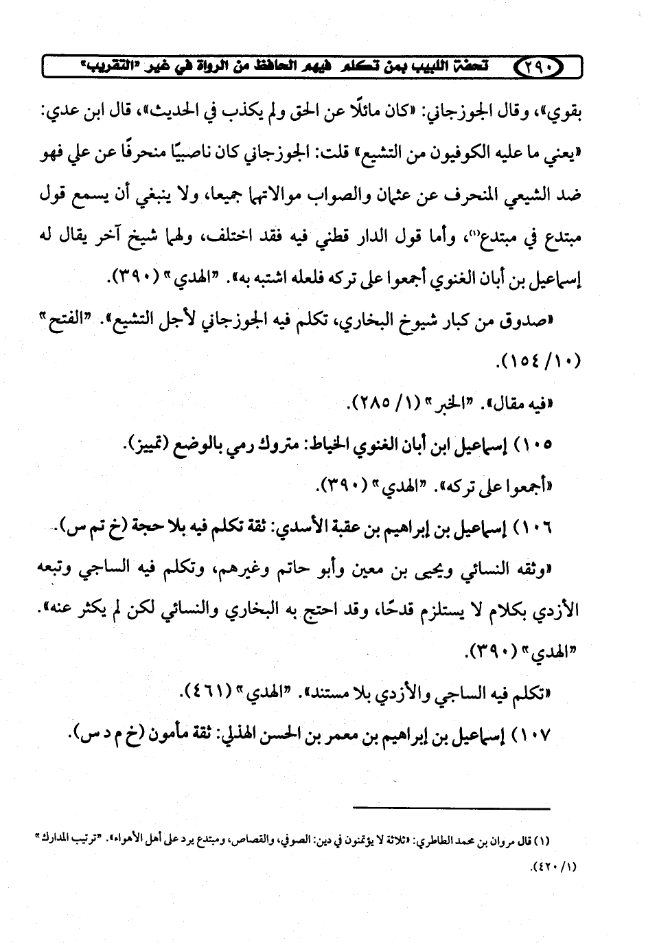 106) إسماعيل بن إبراهيم بن عقبة الأسدي: ثقة تكلم فيه بلا حجة (خ تم س).
