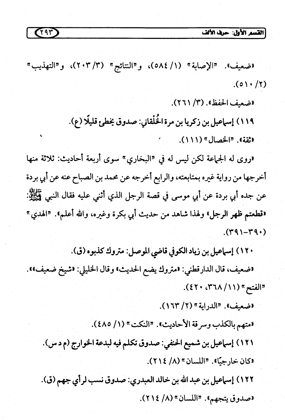 119) إسماعيل بن زكريا بن مرة الخُلْقاني: صدوق يخطئ قليلًا (ع).