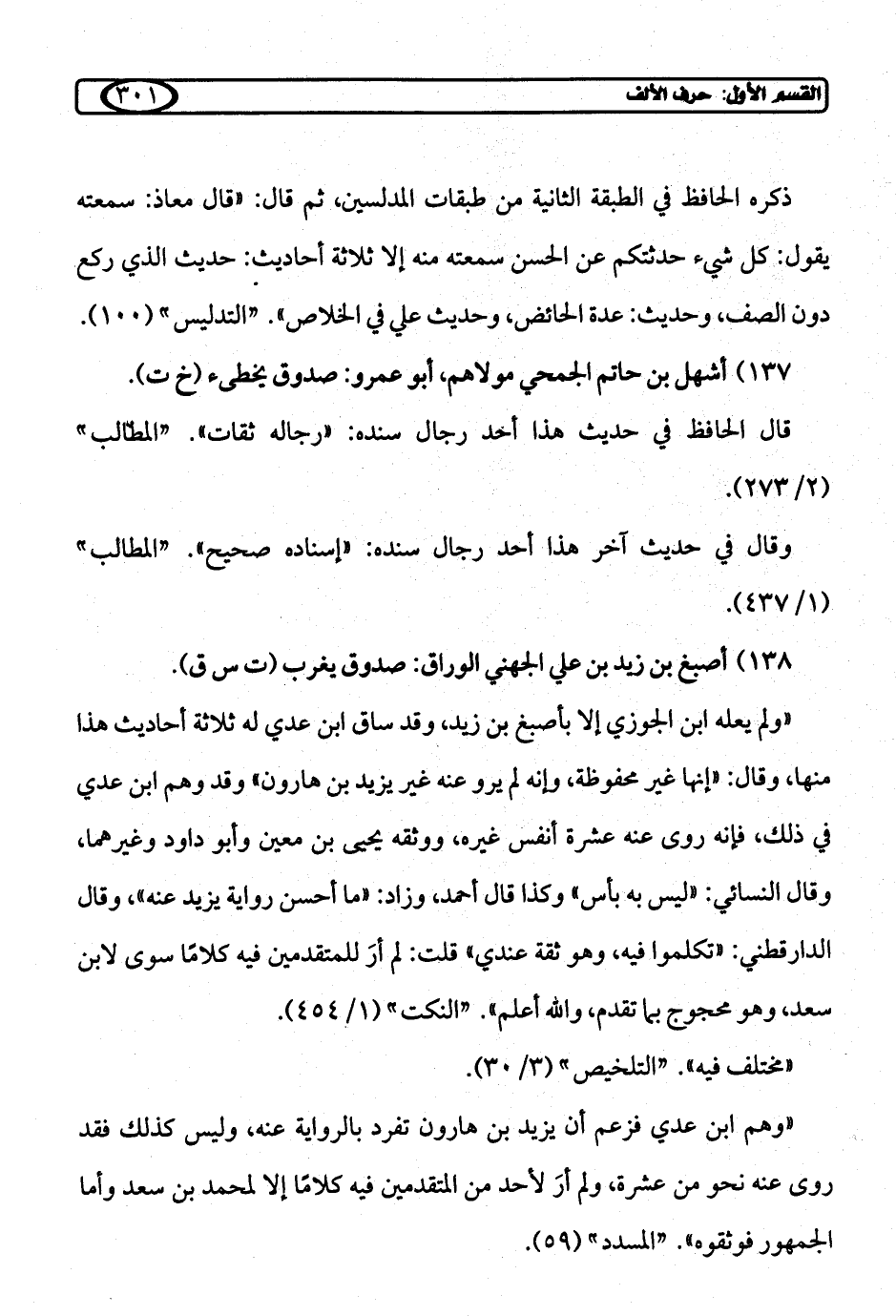137) أشهل بن حاتم الجمحي مولاهم، أبو عمرو: صدوق يخطئ (خ ت).