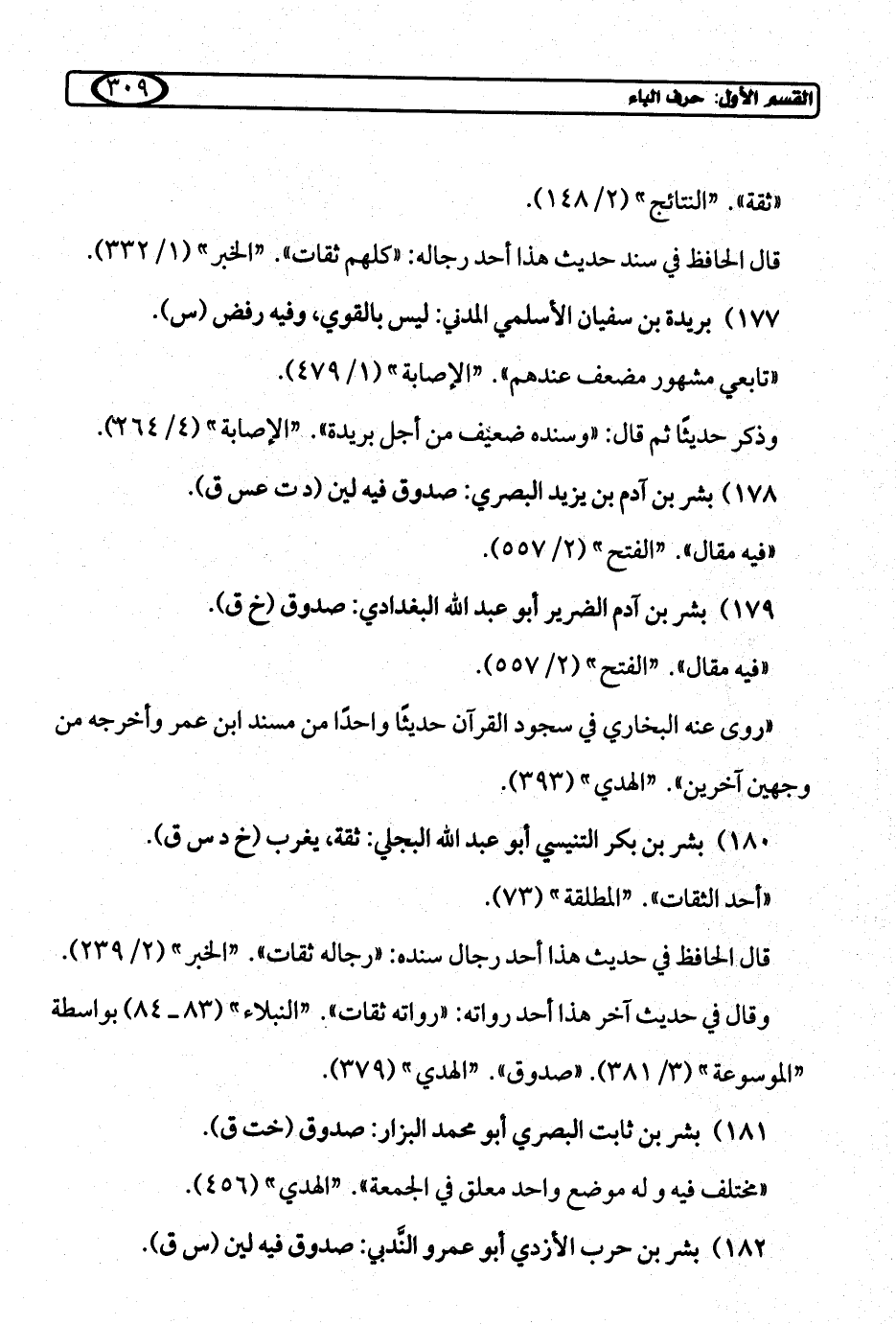 179) بشر بن آدم الضرير أبو عبد الله البغدادي: صدوق (خ ق).